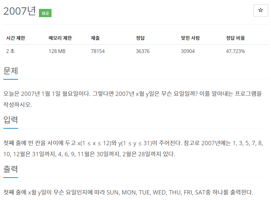 6. total을 7로 나눈 나머지를 인덱스로 갖는 Day 배열의 값을 출력한다.