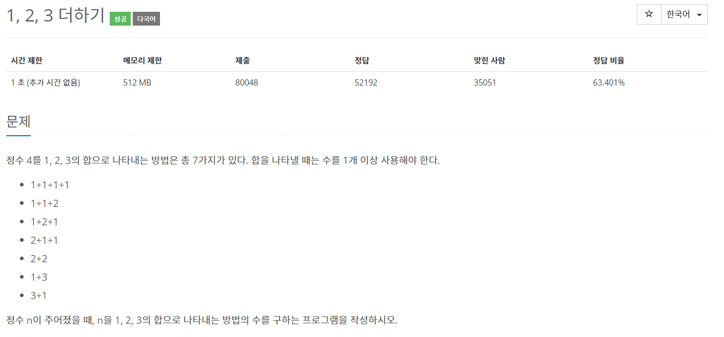 1, 2, 3을 이용해 4를 만들 수 있는 경우의 수는