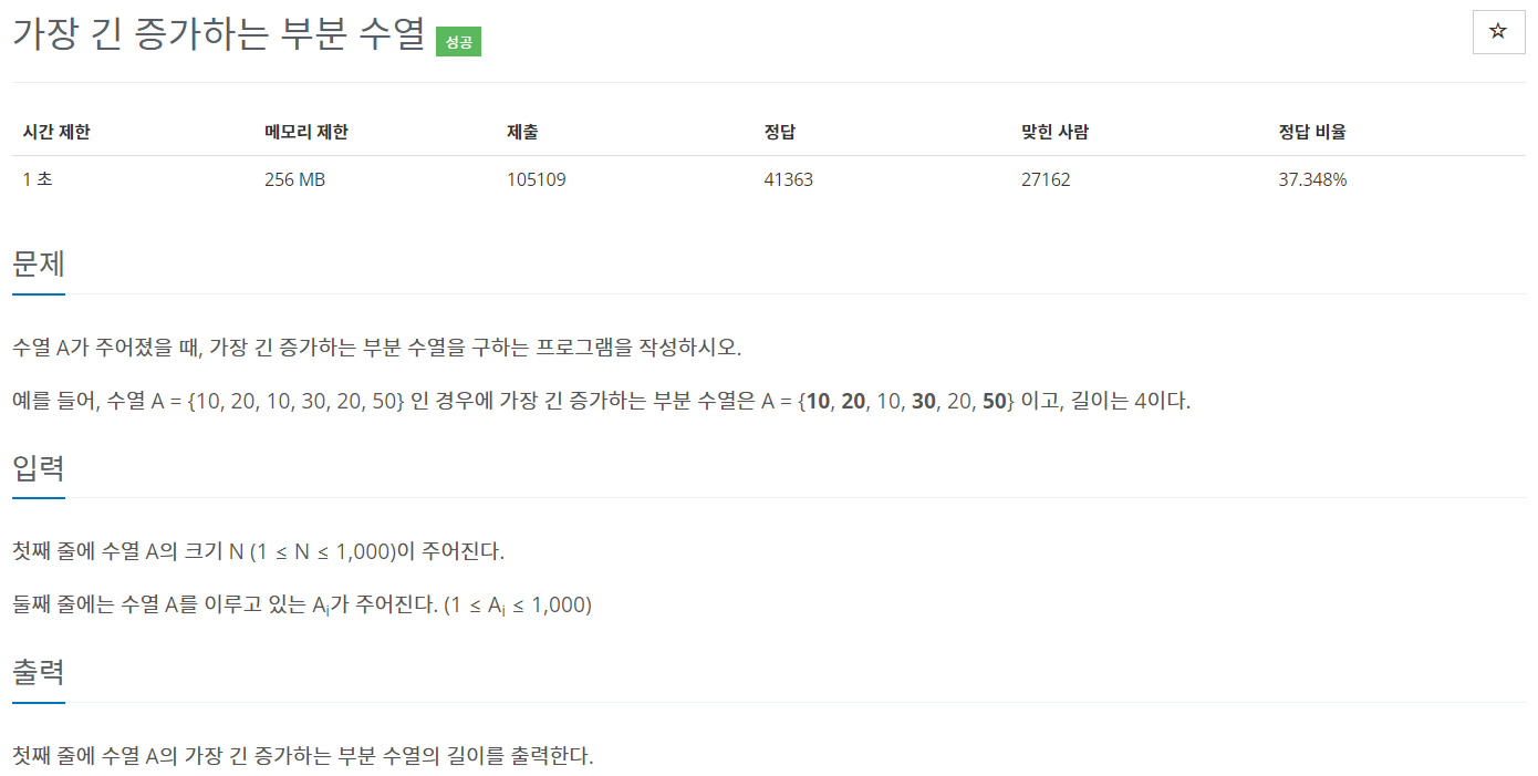 바로 전에 풀었던 가장 긴 감소하는 부분 수열의 길이와 전체적인 흐름은 같다.