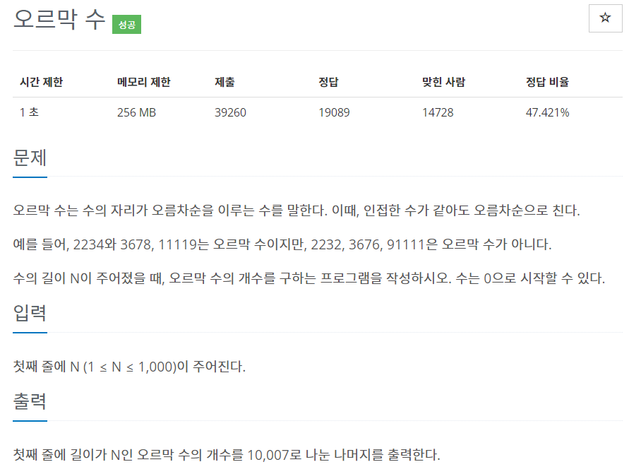 결국 0부터 9까지의 숫자로 만들 수 있는 오르막 수는 이전 N-1 자릿수의 j부터 9까지의 값의 합과 같다.