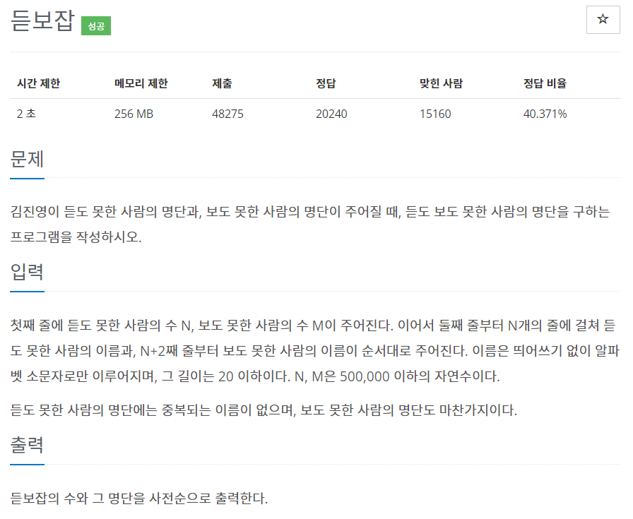 듣도 못한 사람의 명단과 보도 못한 사람의 명단이 주어질 때