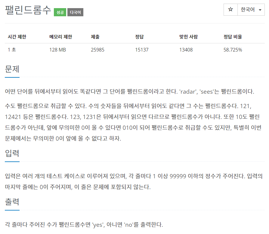 단어를 앞에서부터 읽으나 뒤에서부터 읽으나 같을 때 팰린드롬이라고 한다.