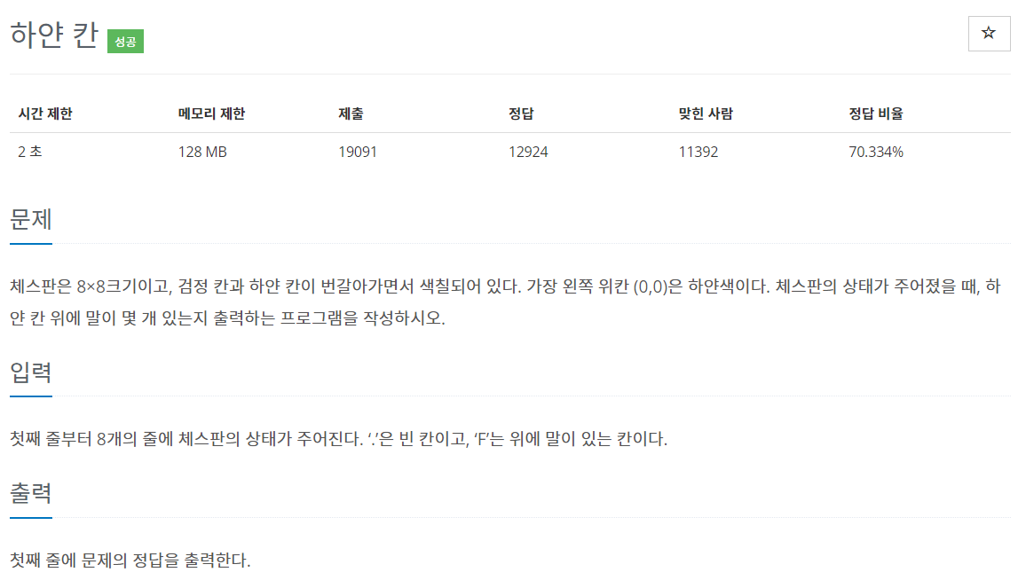 8x8인 체스판에서 흰색인 칸은