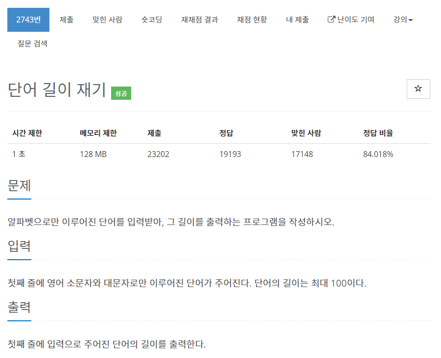 String.length()로 문자열의 길이를 세고 출력만하면 되는 간단한 문제다.