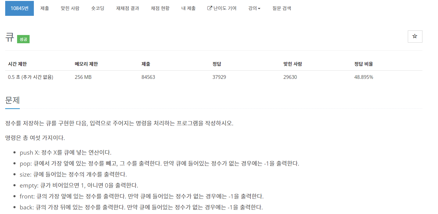 (= 큐는 head부터 rear-1까지 데이터가 들어있다.