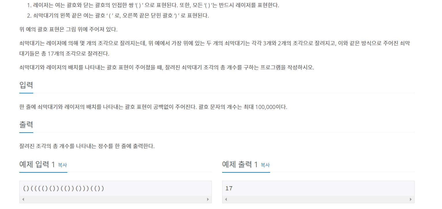 // 직전에 입력된 문자가 ')' 이었다면 == 한 막대기의 끝이라면