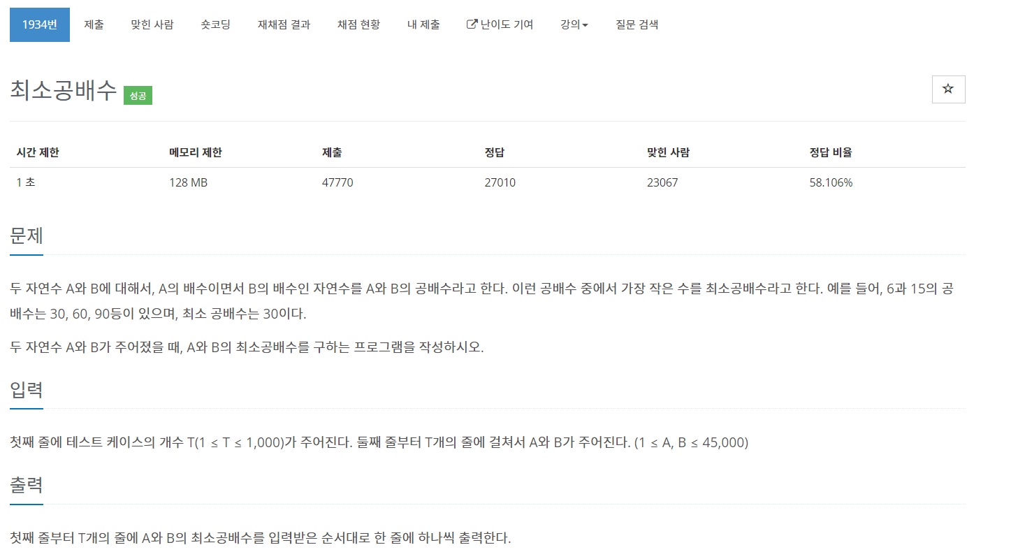 AB = adbd 이니 이것을 d로 나눠주면 최소공배수를 구할 수 있다.