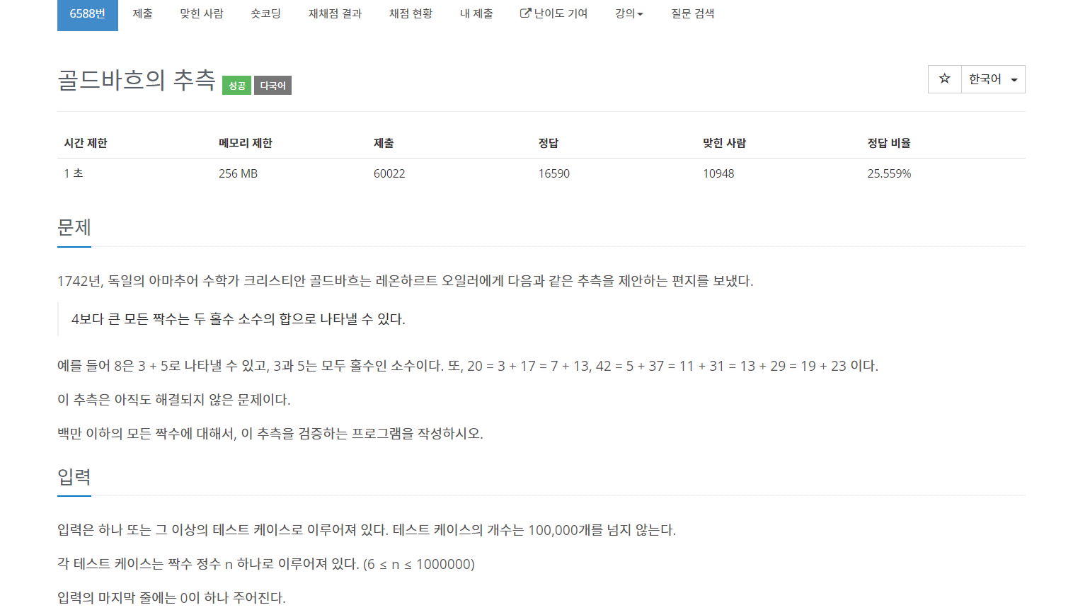 // 두 개의 소수의 합으로 n을 나타낼 수 없다면