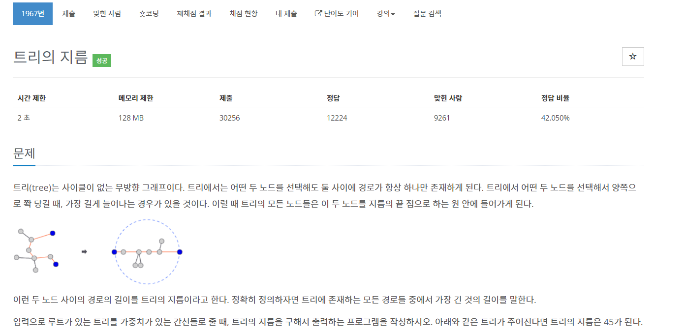 그 노드부터 다시 dfs를 수행하는 두 가지의 방법으로 풀어보았다.