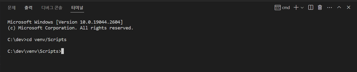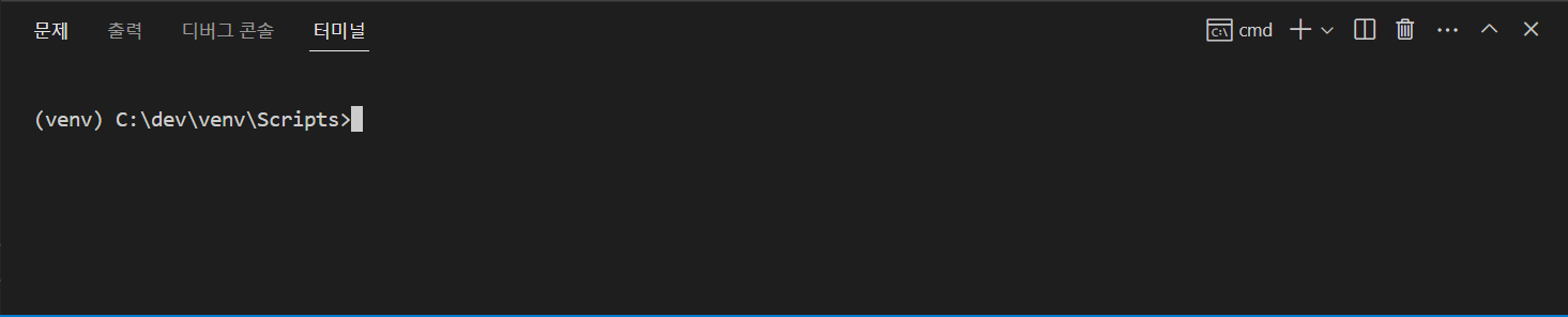 Scripts 폴더에서 위 명령어를 입력하면 가상환경이 활성화된다.