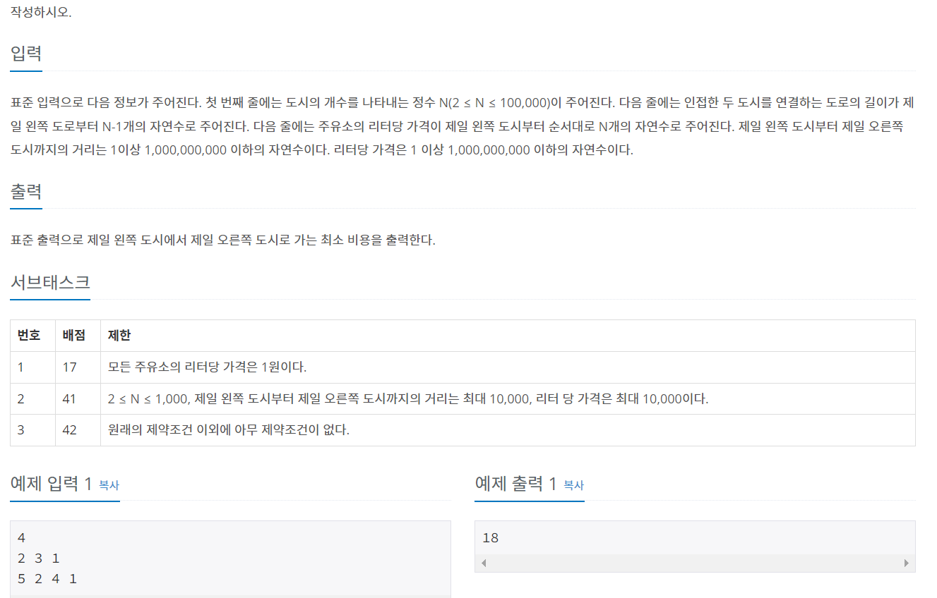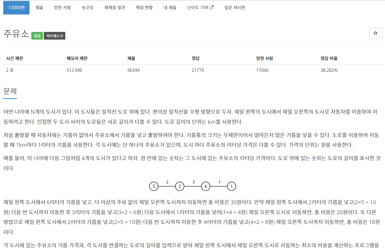 다음 도시의 기름값이 더 저렴할 때에만 기름값을 업데이트하면 된다.