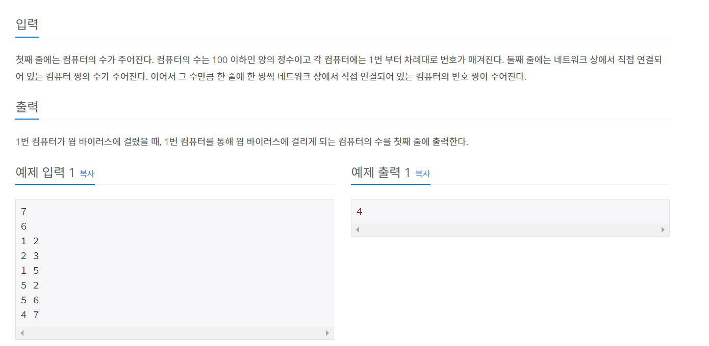 따라서 1번 노드에서 BFS를 수행하면서 1번과 연결된 컴퓨터의 개수를 세주면 된다.
