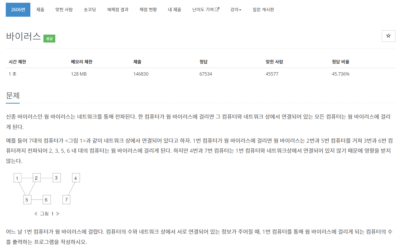 1번 컴퓨터와 자기 사이에 아무리 많은 컴퓨터가 있더라도 연결되어있다면 무조건 바이러스에 걸린다.