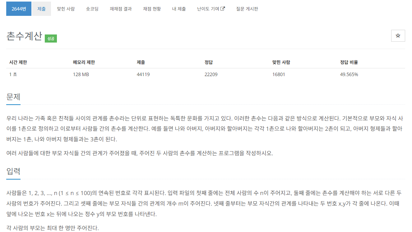 모든 정점에 대해 bfs를 수행할 필요는 없고, 촌수를 계산해야 하는 번호에 대해서만 bfs를 수행해주면 된다.