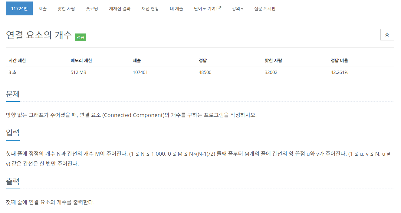 그래프에 연결 요소가 총 몇 개 있는지 카운트하는 문제다.