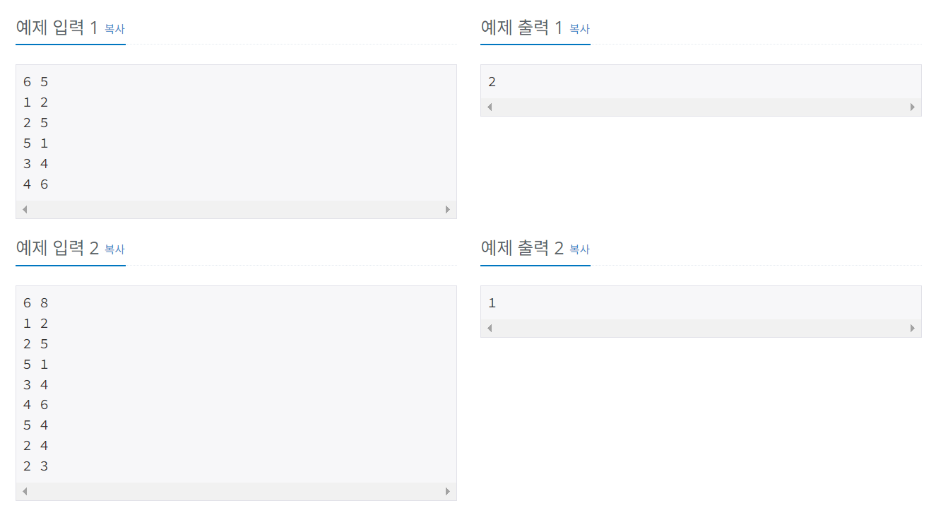 즉 그래프에서 모든 정점을 다 방문할 때까지 DFS나 BFS로 탐색한 횟수를 세면 된다.