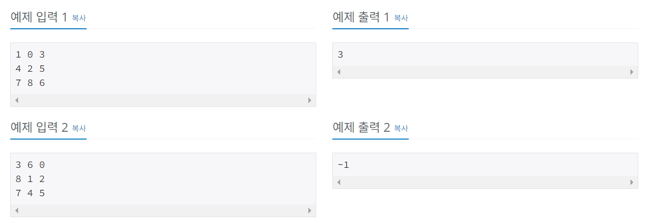 # 여기까지 리턴되지 않았다는 건 목표 상태에 도달할 수 없다는 뜻이므로 -1을 리턴
