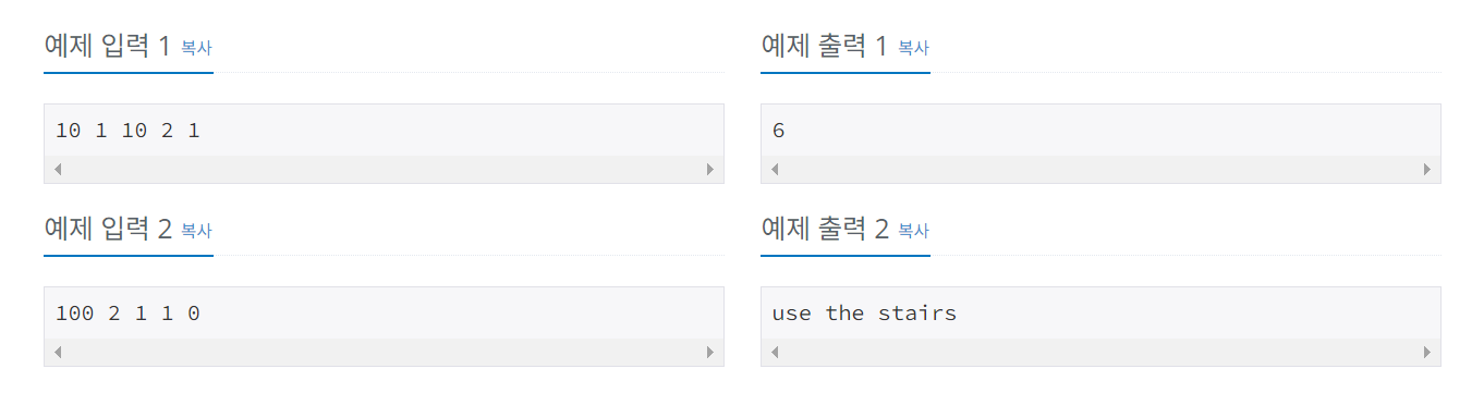 print("use the stairs")