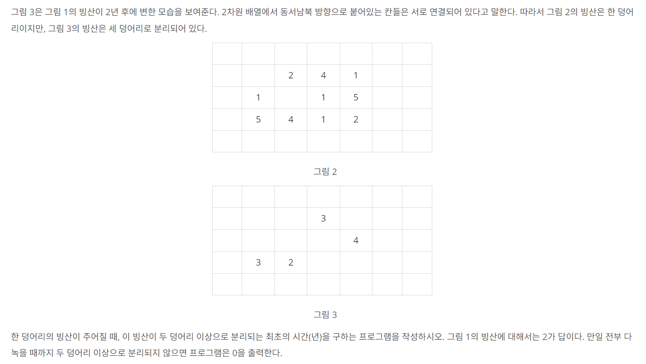# 얼음 덩어리의 개수가 2개 이상이라면 년수를 출력함