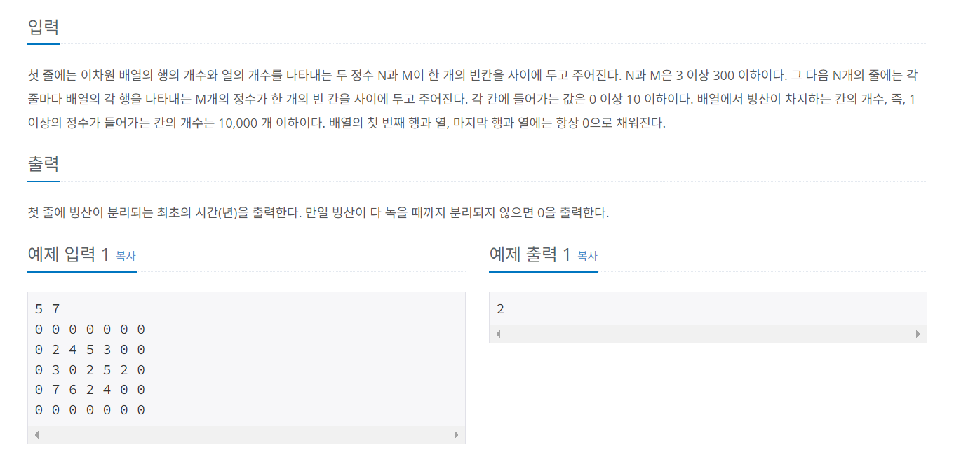 # 얼음 덩어리의 개수가 2개 이상이거나 아예 없는 경우 반복문 종료