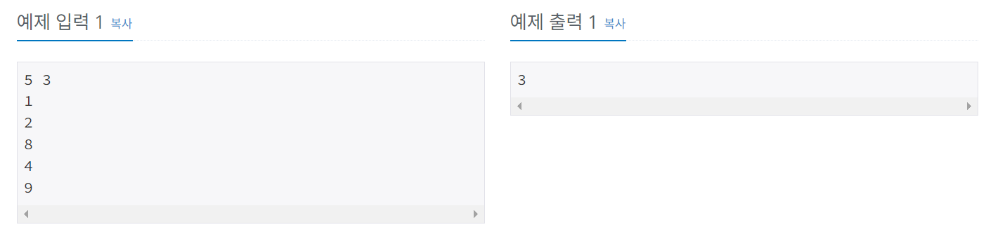 # 일단 공유기 설치를 끝냈는데, 설치한 개수>=주어진 공유기 개수라면