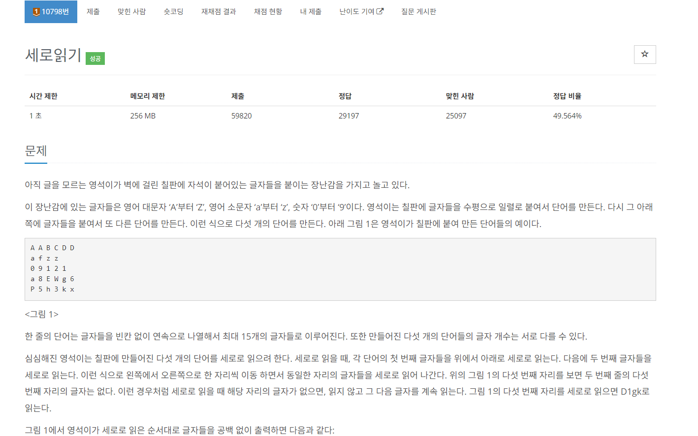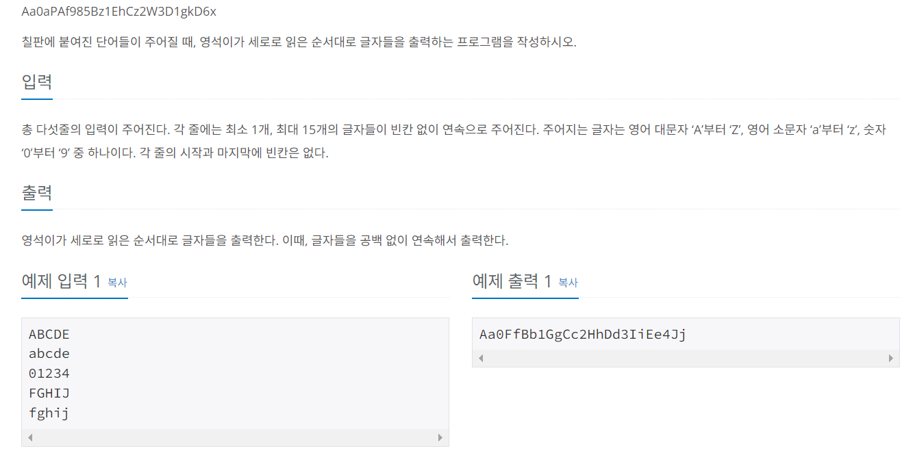 // 세로읽기니까 열(읽을 문자열의 길이)을 고정하고 행을 1씩 증가시킴
