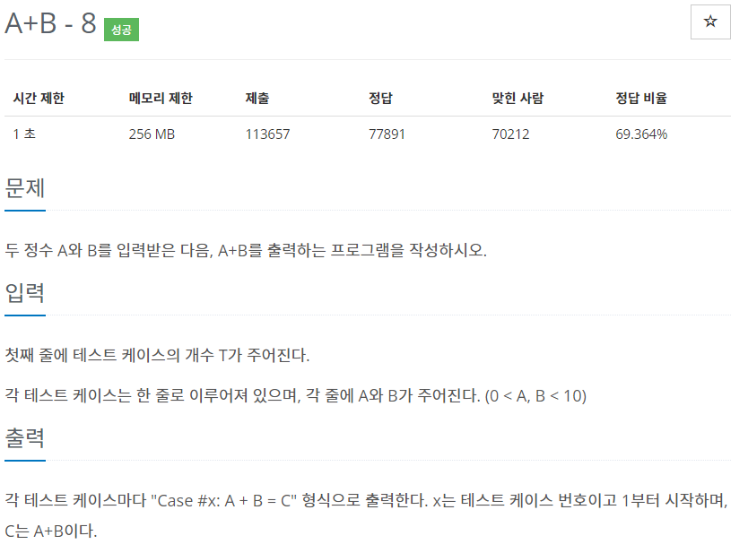 System.out.printf("Case #%d: %d + %d = %d\n",i,A,B,A+B);