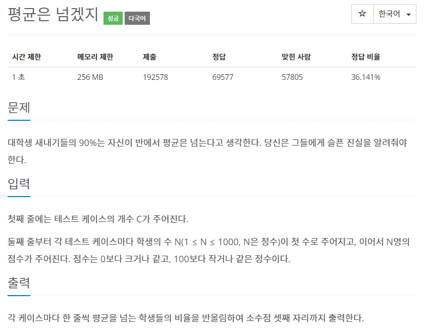 | [백준] 1546 : 평균 JAVA 풀이 (0) | 2022.05.12 |