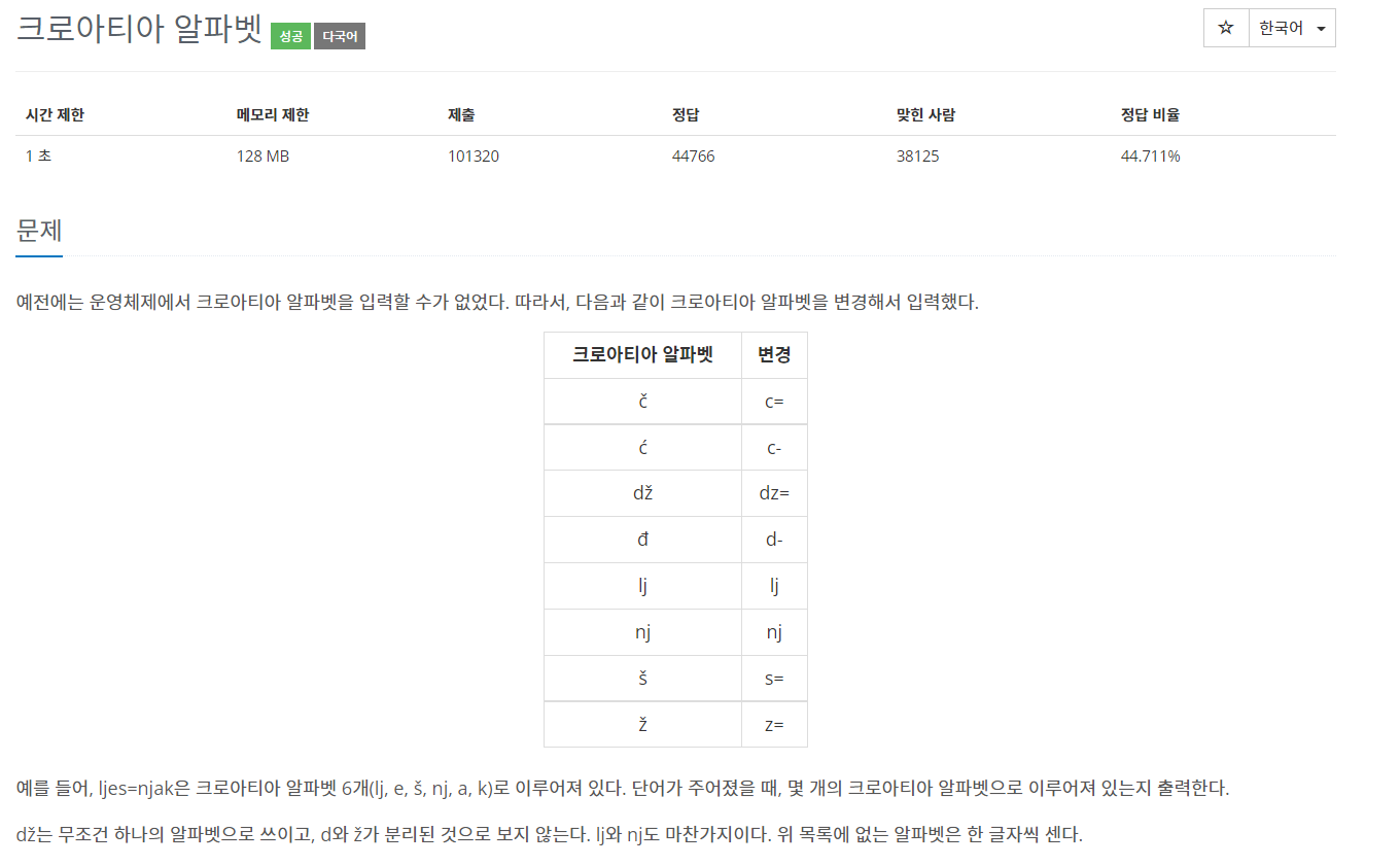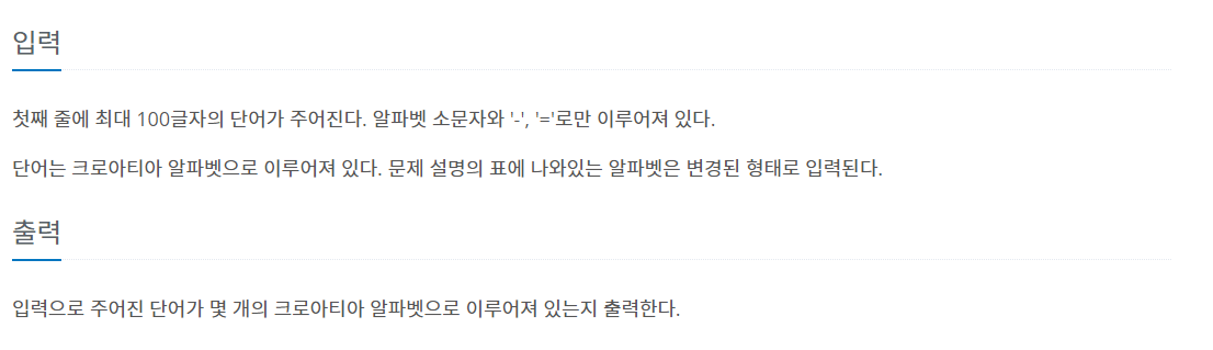 크로아티아 알파벳의 개수는 크로아티아 알파벳이 변경된 형태의 마지막 글자가 '=', '-', 'j' 셋 중 하나인 점을 이용했다.