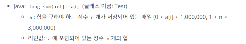 입력되는 배열 a의 길이만큼 반복문을 돌려서 a의 모든 값을 더하는 식으로 풀었다.