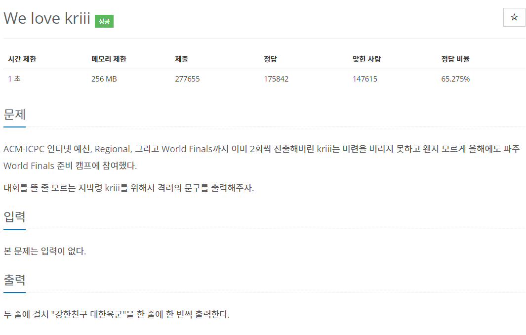 System.out.printf("%s", "강한친구 대한육군\n강한친구 대한육군");