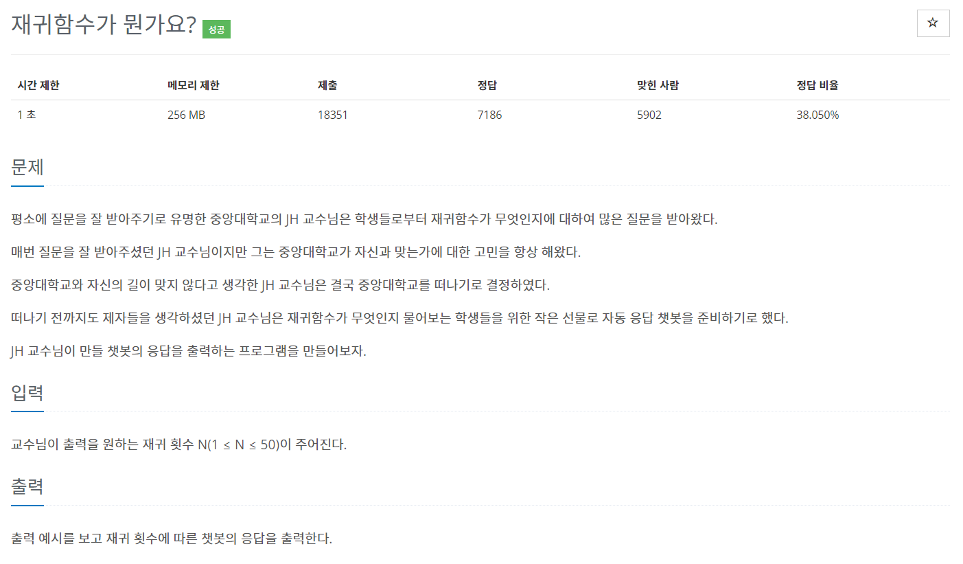 3-1 재귀 종료 조건은 함수의 인자가 0일 때로 한다. (메인에서 입력받은 N부터 0까지 감소시키며 재귀)