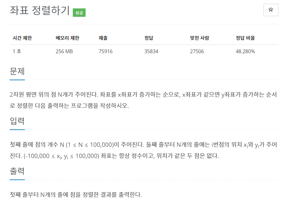 4. x좌표의 오름차순으로 배열을 정렬하는데 x좌표가 같을 때는 y좌표의 오름차순으로 정렬한다.