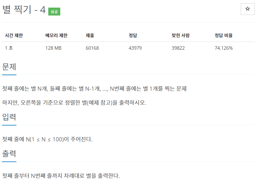 반복문을 사용해 i번 공백출력, N-i번 *출력 후 줄바꿈을 하도록 코드를 작성한다.