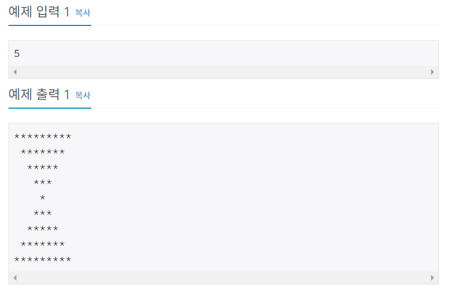 sb.append(space.repeat(N-i)).append(star.repeat(2*N-1)).append('\n');